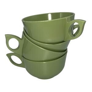 Vintage Melamine 7-Pc Set Avocado Green Cups (#108) Bowl (#106) Creamer (#107)