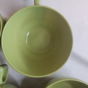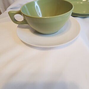 Add retro flair to your kitchen or picnic setup with this colorful melamine coffee set. Featuring 7 durable coffee cups and 8 coordinating saucers (4 green, 4 white), this lot blends mid-century charm with everyday practicality. Perfect for collectors, campers, or anyone who loves a pop of vintage color.