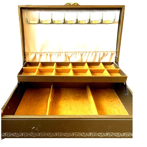Vintage Mele & Co Jewelry 2 Tier Box Gold Tone Yellow Inside 1950s