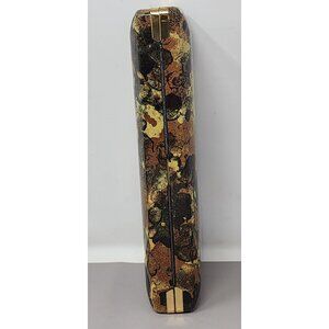 Vintage Mele Jewelry Box Brown & Gold Floral Velvet Lined Storage Case