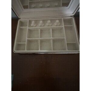 Vintage Mele Mirrored Jewelry Box 12 Compartments Fabric USA 10.5X6.5X2
