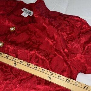 Vintage Melissa Red 2-Piece Dress Suit Set Size 16M Floral Jacquard Button-Up To