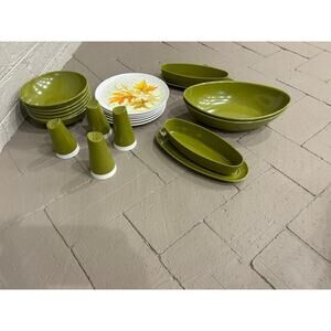 Vintage Melmac Melamine Dish Set Green 1960's Allied Chemical Mid Century