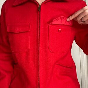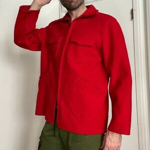 Vintage Melton Full Zip Wool Hunting Coat Jacket Size Large Red 70s 80s