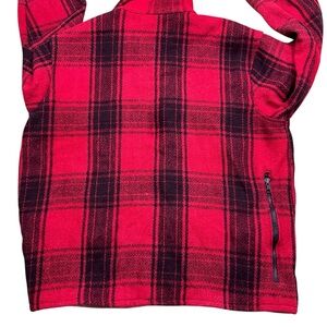 Vintage Melton buffalo plaid 1960s/70s wool hunting jacket. Made in the USA. Fully lined. Steel YKK zipper high-quality. Measures as a men’s large. Laying flat: 20 inches shoulder to shoulder, 23 inches pit to pit, 27 inches in total length, sleeve length – 23 inches. No rips or tears, has some light discoloration as shown in photos. Two front chest pockets, two front slide pockets. Smoke and pet free home. USA made.