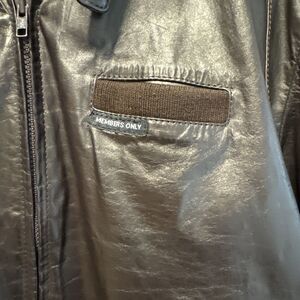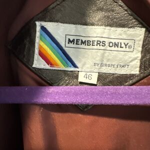 This vintage leather jacket by Members Only is a must-have for any retro enthusiast. Made in Europe and crafted with care, this original piece features a sleek brown color and a size of 46 for men. The jacket boasts a motorcycle/biker look, perfect for casual occasions in the 1980s.