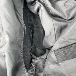 Flaws include patina on the brass buckle, tearing in the lining at the arm sleeves