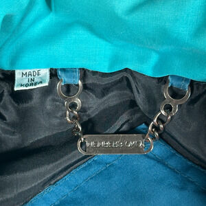 • 80s vintage green polyester, cotton blend shell; black nylon lining; down, waterfowl feather fill jacket