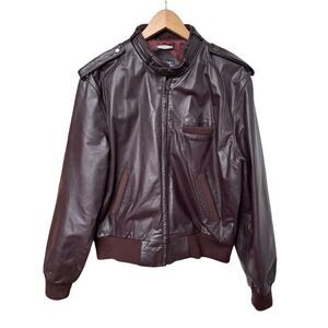 Vintage Members Only Burgundy Chocolate Brown Leather Bomber Jacket Size 44 Rare