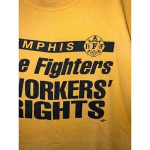 Vintage Memphis FireFighter Shirt Workers Rights Tee Fire Fighter VTG XL Yellow