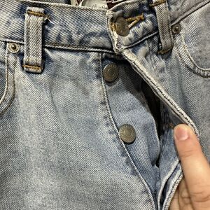 Vintage Memphis Women's Mom High-Rise Blue Denim Shorts Distressed Size 7 / 27” waist button fly