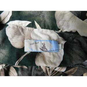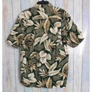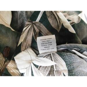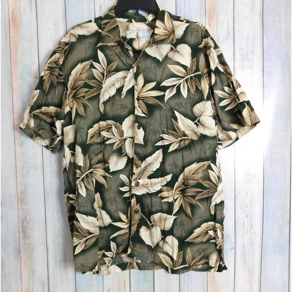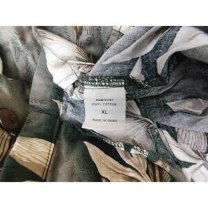 Vintage Men Hawaiian Shirt XL Green Tan Leaves Short Sleeve Button Down