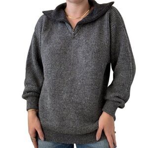 Vintage Mens 100% Alpaca Gray Ribbed Quarter Zip Soft Peruvian Sweater Sz M