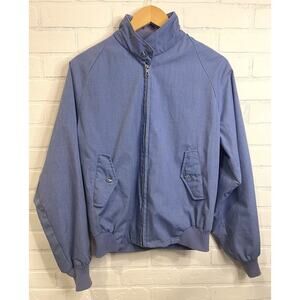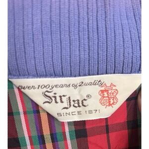 The Vintage Mens #40 Sir Jac Jacket in light blue with a red plaid lining is a stylish and unique piece of outerwear from the 1980s. This bomber/harrington style jacket is perfect for everyday wear and showcases a classic red color. The regular fit and specialty design make it a standout addition to any man's vintage wardrobe.