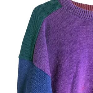 Vintage Men’s 80’s Saks Fifth Avenue Purple Colorblock Crewneck Sweater Size XL