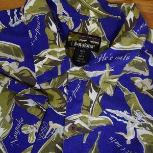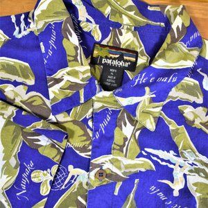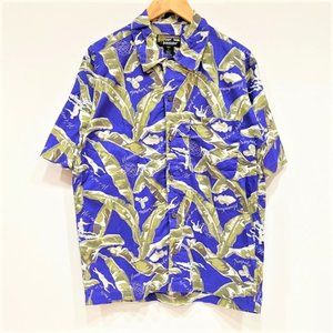 Vintage Men's 90s Blue Climbing Hawaiian Aloha Shirt Pataloha Patagonia XL