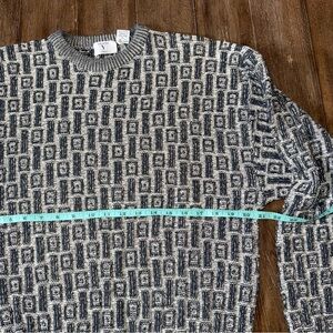 • Style: pull over, crew neck, 90s pattern, 100% cotton, knit, long sleeve, vintage designer, comfy, fall, winter, black grey blue white,