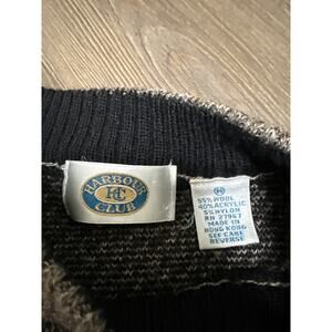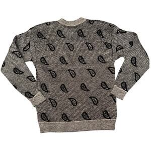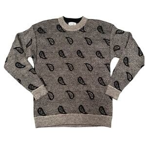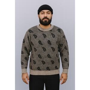 Vintage Mens 90s Fisherman Style Knit Printed Wool Sweater Gray Size Medium