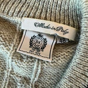 Vintage Men's Alpaca Beige Cable Knit Sweater with Stripes Italy