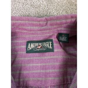 Vintage Men's American Eagle Long Sleeve Button Up Shirt L Red Striped C557