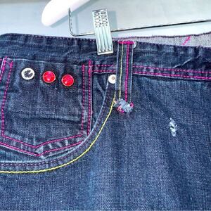 Vintage Men’s Artful Dodger Embroidered Rainbow Skull Straight Jeans size 36 Y2K. Please see all photos, there are 3 small holes in these jeans.