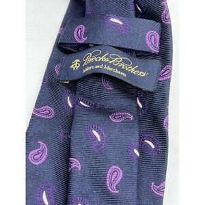 Vintage Mens Brooks Brothers Makers & Merchants Navy Italy Woven Silk Paisley