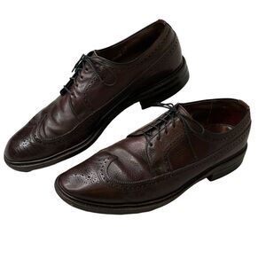 Vintage Men's Brown Leather Wing Tip Shoes Made In USA Circa 1970s Size 11