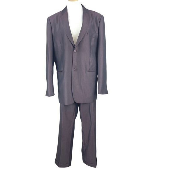 Vintage Mens Burgundy Suit (44L) FALCONE Notch Lapel Single Cuffed 80s Gangster