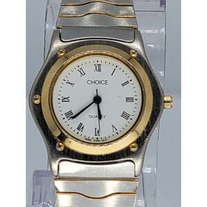 Vintage Mens Choice Watch Quartz Roman Numeral Hong Kong Movement Two Tone Watch