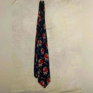 Yule Tie Greetings Mens Christmas Tie by Hallmark Licensing in Navy red green white with Santa with a sack of toys & candy canes. Made in USA of Imported Fabric. Length 58.75 in. SFPF HOME