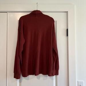 All orders ship within 1-3 business days. This men's longsleeve turtleneck shirt is made by Columbia. Color is dark red. Size is large. Excellent condition. Fabric is 100% cotton. Make me an offer!