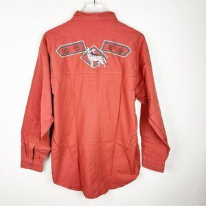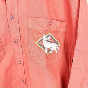 Vintage Mens Cotton Button Down Western Shirt Wolf Native American Print Large