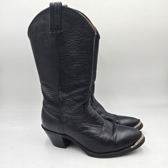 Vintage Mens Cowboy Boots Black Leather sz 8 W Biltrite Metal Tip Pointed Toe
