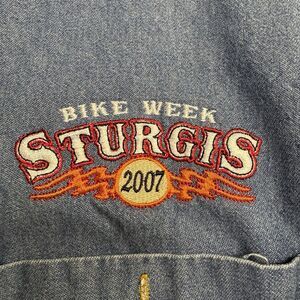 Vintage Mens Denim Motorcycle Button Up 2007 Sturgis Jean Button Up- XL