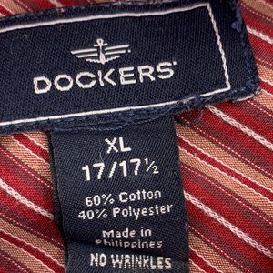 Vintage Men's Dockers Red Striped XL Button Down Shirt Cotton Long Sleeve