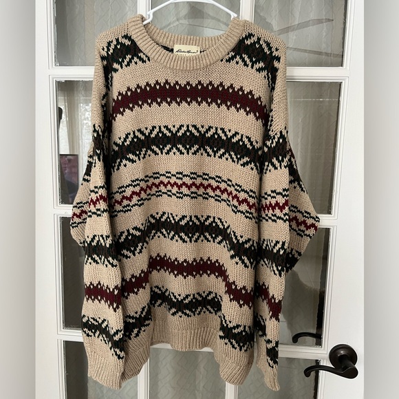 Vintage Men’s Eddie Bauer Fair Isle Knit Sweater Cotton 90s Sz XL Outdoors