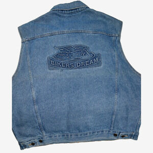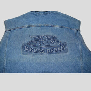 Vintage Men's Embossed Motorcycle Denim Vest Large Bikers Dream USA