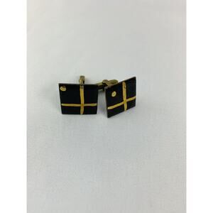 Vintage Men's Enameled Goldtone and Black Square Cufflinks Artsy Retro