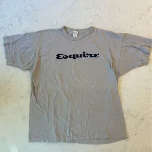 Vintage Mens Gray Esquire Logo Short Sleeve Tee Sz XL