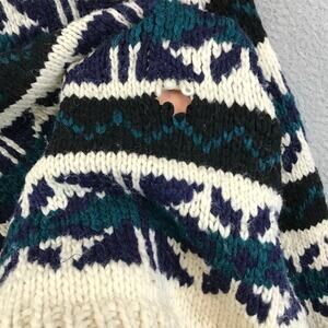 Vintage Mens Hand Knit Print Sweater Chunky Wool Winter size L
