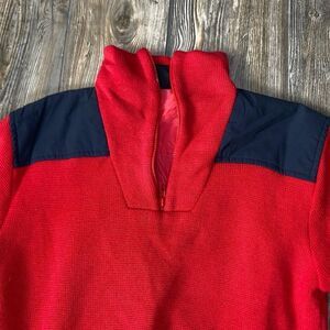 Vintage Men's Helly Hansen Red Insulated Wool Pullover 1/4 Zip Small Elbow Pad