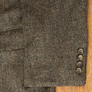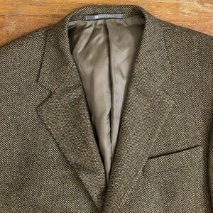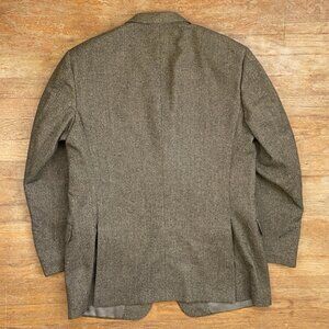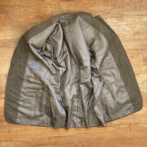 Vintage Mens Herringbone Tweed Wool Blazer Size 42R 90s Beige/Black/Green Jacket