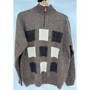Vintage Mens Large Iceland Brown Wool Blend Sweater Block Pattern Made In Italy