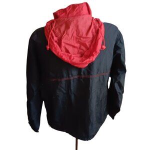 Vintage Men's Large Jacket Windbreaker Red Black Hooded Front 1/2 Zip Pocket