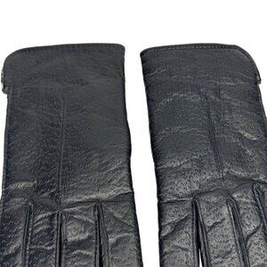 Vintage Mens Large Sears Black Leather Gloves with Faux Fur Lining - 2 Lengths