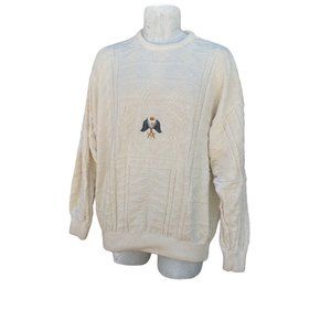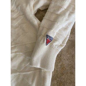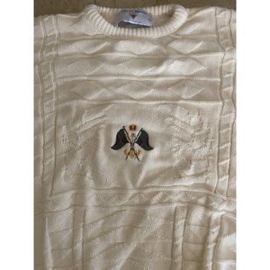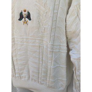 Vintage Mens Le TRICOT MARINE Ireland White Ribbed cotton Sweater Large Flags