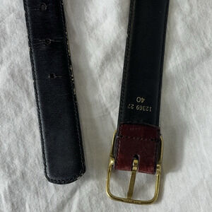 Vintage brown leather belt with a solid brass buckle in size 40, a timeless classic from the 80s–90s that adds effortless style to any outfit. Natural leather patina consistent with age. Refer to images for condition. Due to light and screen difference, the color may be slightly different from the picture.
