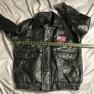 Vintage Men's Leather Jacket Large Patriotic Black Full Zip Collared Biker