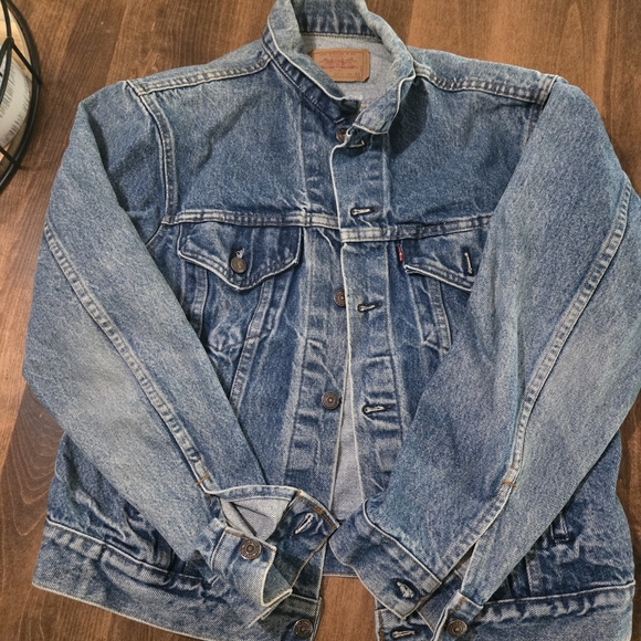 Light blue denim jacket by Levi's. Features classic stitching and iconic label.