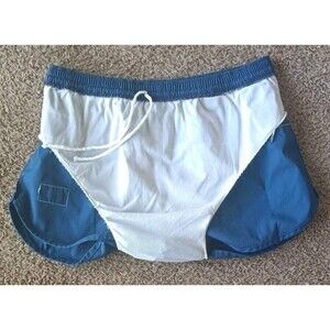 Vintage Mens Malibu Swim Trunks Sz Large Navy Blue Yellow Board Short Drawstring